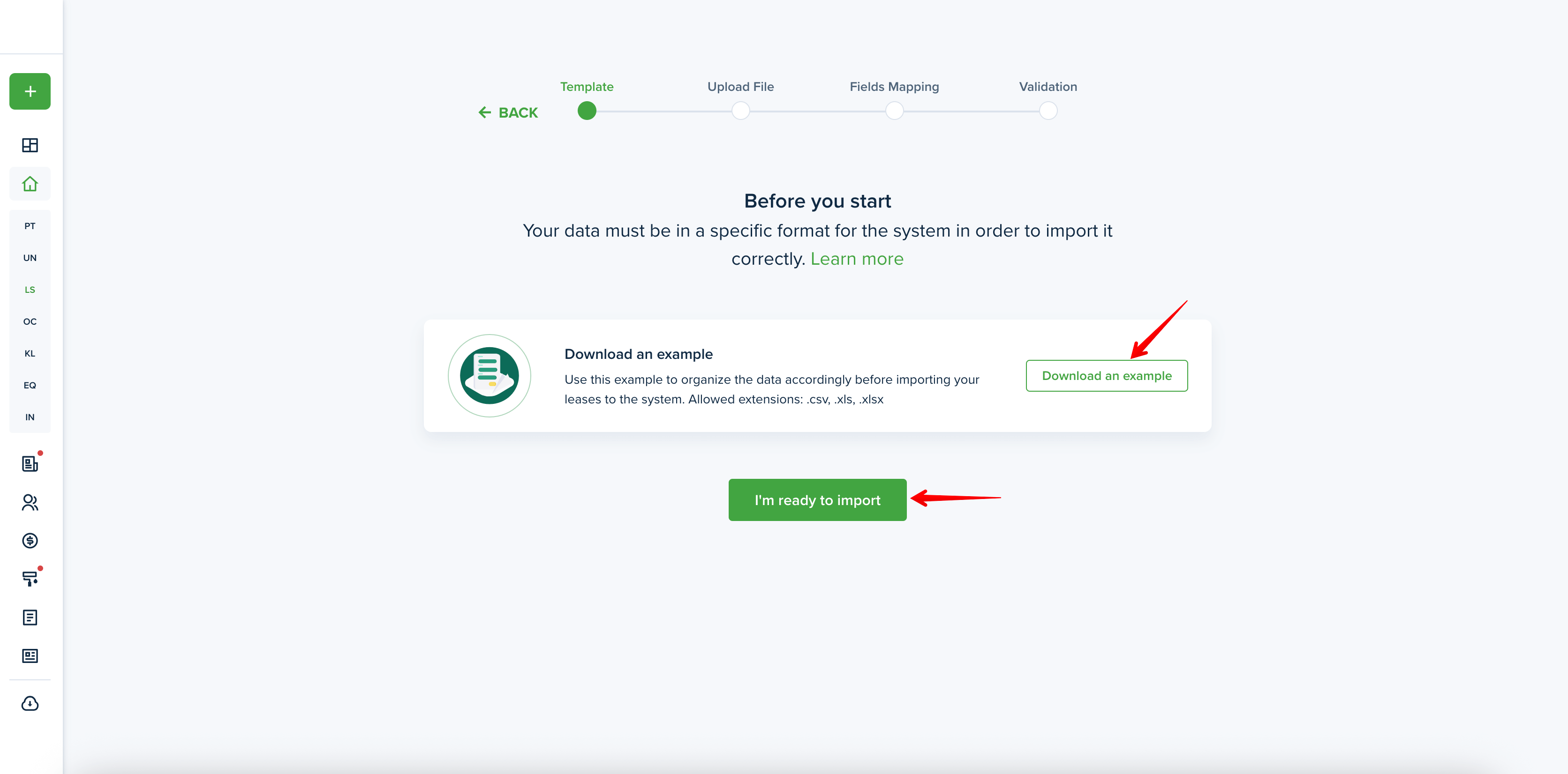 Easily import properties, contacts, and leases with the help of the import sample. No need to add each item one by one, simply enter the information needed into the appropriate fields and the system will upload all your properties, contacts, and leases at once.