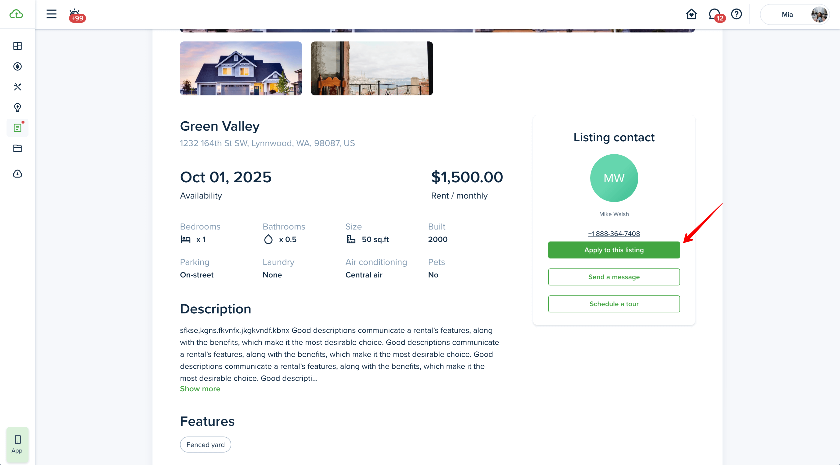 In order to apply for a rental, the landlord needs to send the prospective renter a link to fill out an application for the listed rental. As an applicant, you may also visit the website hosted through the software and apply for a rental using the website's listing.
