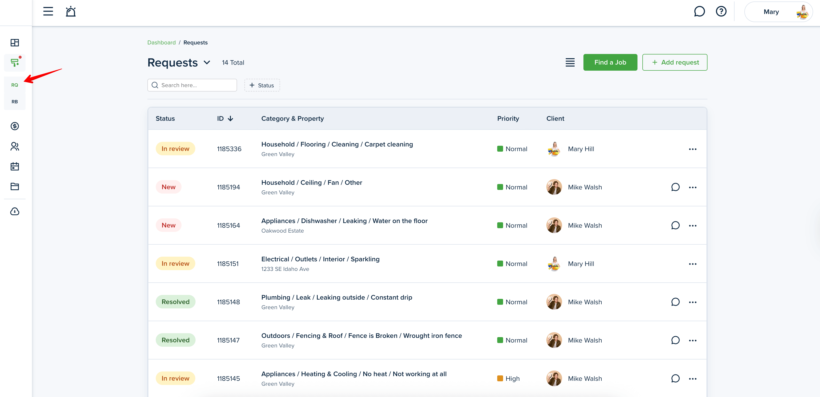 Go to the "Requests" page from your left-side menu:
