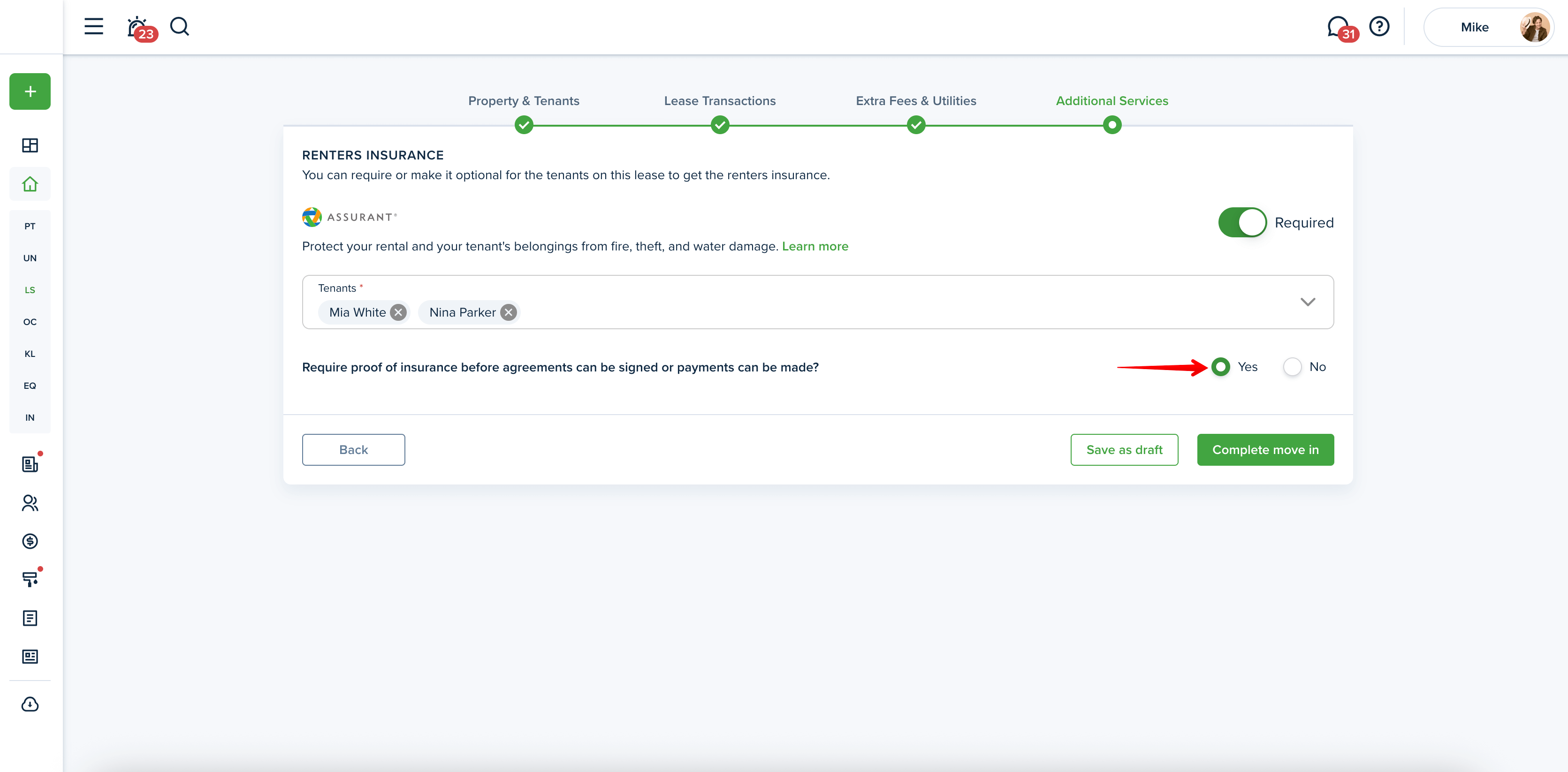 You can also choose whether you want your tenants to provide proof of insurance before they’re able to sign the agreement or make payments.