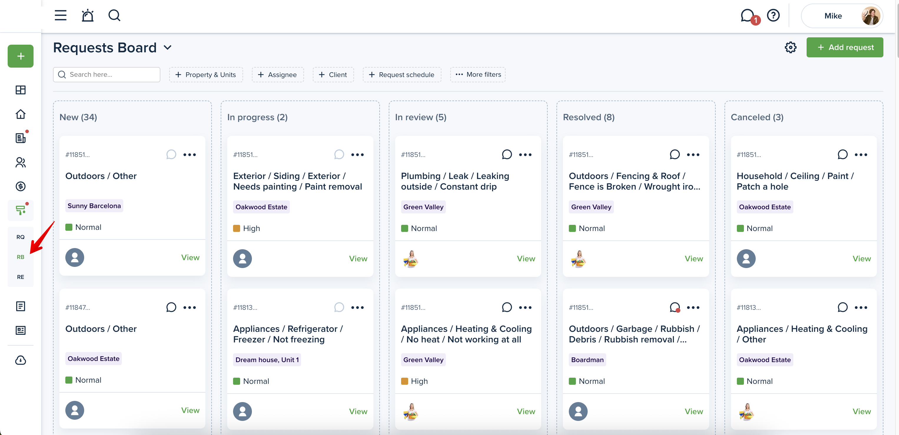 Once the work is done, you or your Service Pro can move it to the status In review. At this point, you can review the work that was done by the Service Pro and change the status to Resolved to confirm the maintenance request fulfillment or move it to any other status.