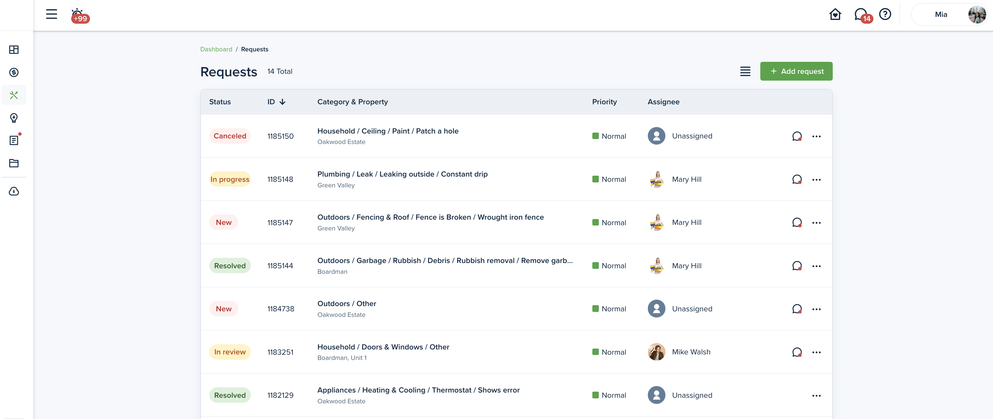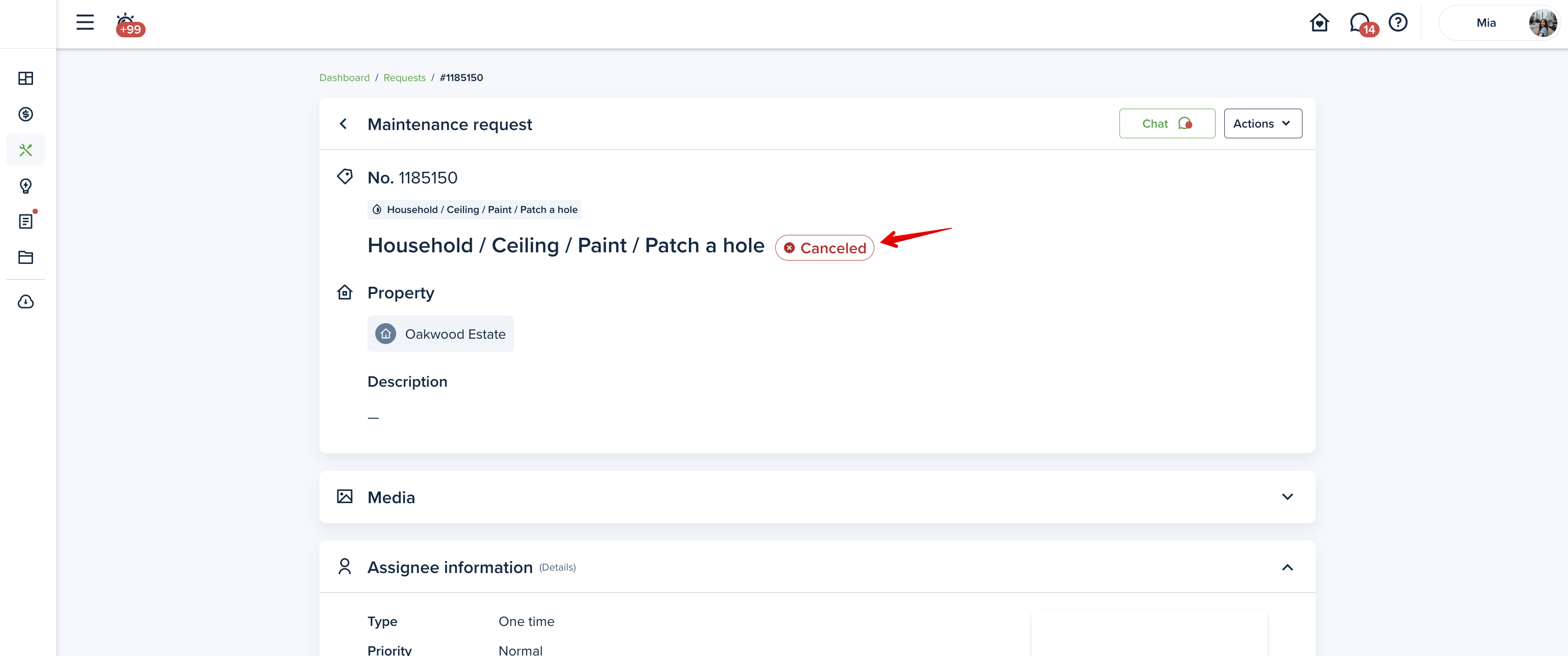You can change the maintenance request status to "Canceled". Your landlord and service pro can do the same on their end. In this case, the sharing of this request ends. Canceled requests cannot be edited. You'll be able to remove them only.