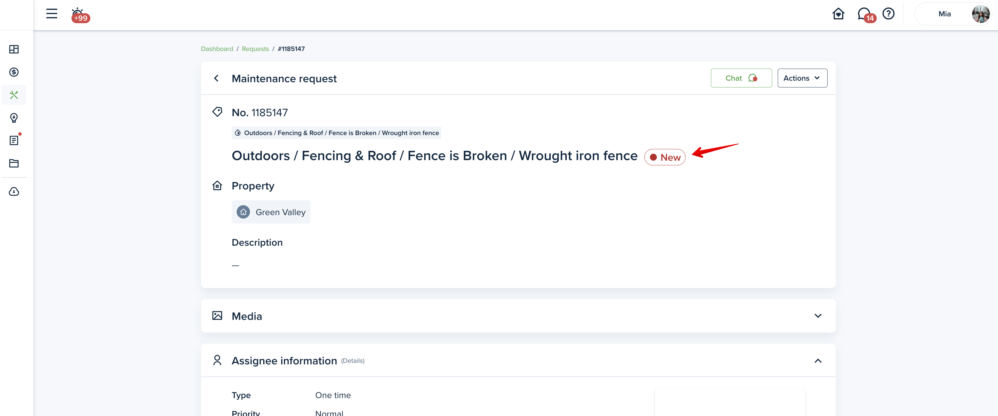 "New" status indicates that you've created the work order manually and submits the request online. It automatically shares with the landlord if connected. Also, your landlord can create the request manually and make it visible to you. Note that you'll be able to cancel a request.'